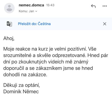 Pokud do 14 dnů po absolvování kurzu nezískáš alespoň 3 reálná doporučení (a přitom aplikuješ systém podle návodu), vrátím ti peníze bez otázek.