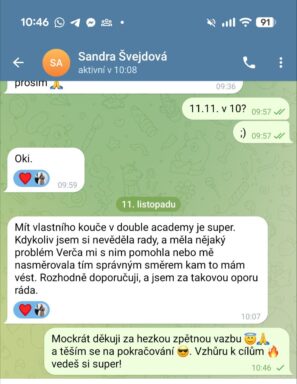 Každý má osobního kouče. Každé pondělí je živý call. Můžeš napsat. Zavolat. Přijít k nám. Takže ano – dostaneš pozornost. Dostaneš podporu. Dostaneš pomoc, kdykoliv ji budeš potřebovat.