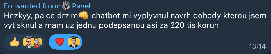 A nebo jako Pavel. Jednoduše a lidsky si "pokecal" s naším AI asistentem, doslova mu vyplyvnul návrh dohody a podepsal ji za 220 000 Kč!