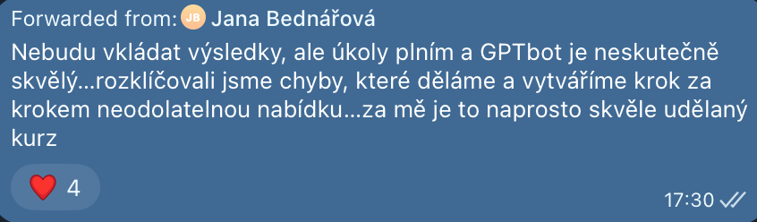 Za těchto 1 500 Kč získáš nejen 5 dní mého know-how, ale především přístup k 5 naprogramovaným GPT botům a bonusům v celkové hodnotě 105 000 Kč.